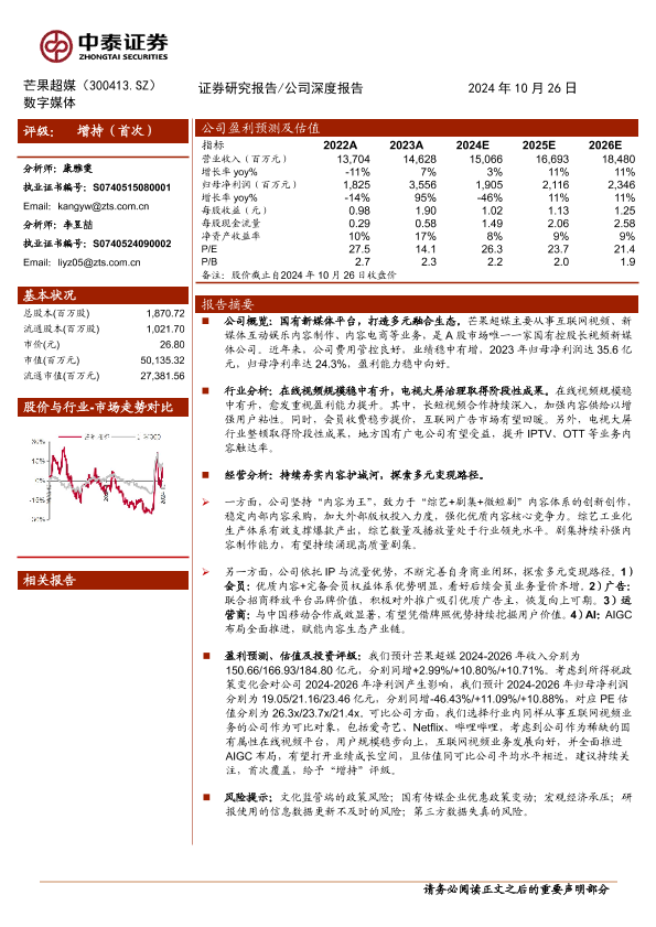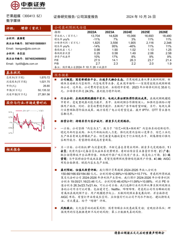 【中泰证券】【20241026】芒果超媒(300413)内容壁垒不断稳固,国有平台蓄势以待-25页
