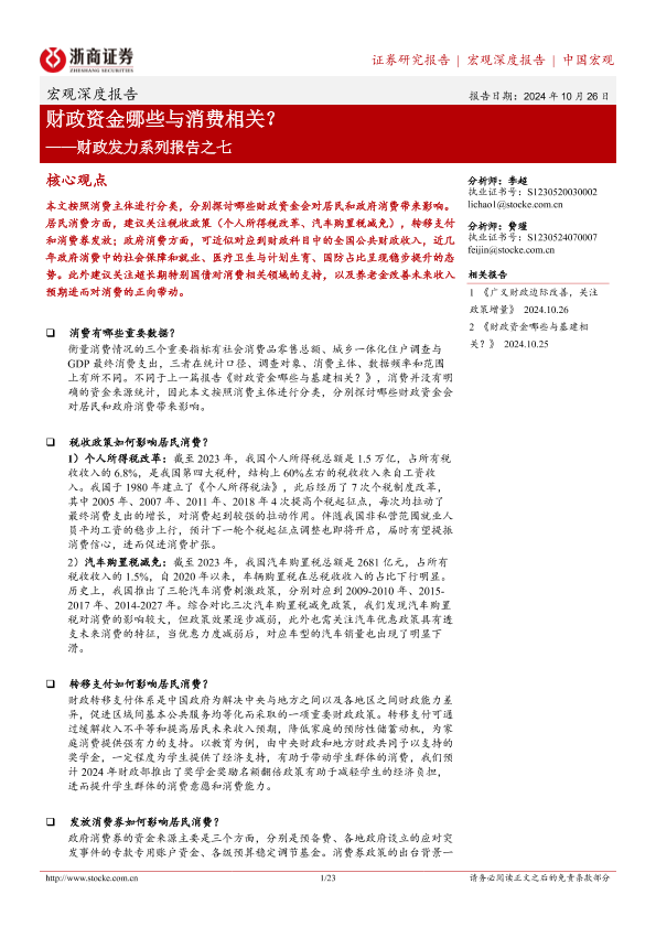 【浙商证券】【20241026】财政发力系列报告之七:财政资金哪些与消费相关?-23页