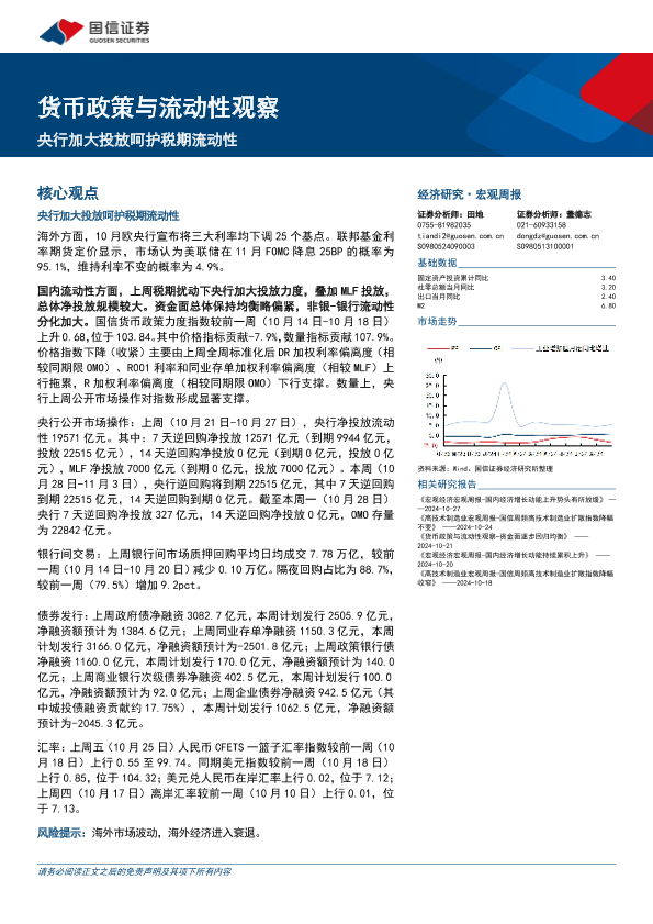 【国信证券】【20241028】货币政策与流动性观察:央行加大投放呵护税期流动性-14页