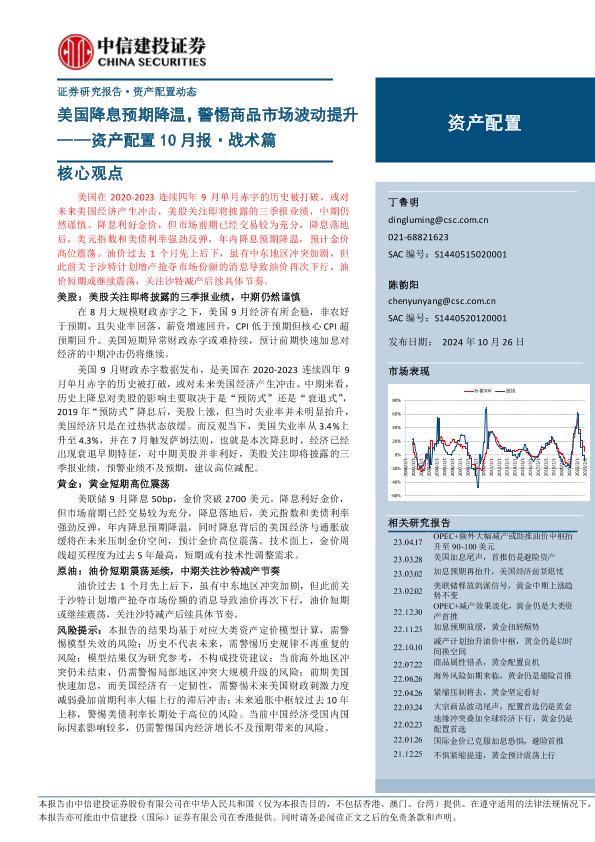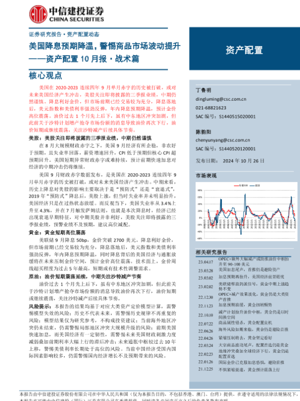 【中信建投证券】【20241026】资产配置10月报·战术篇:美国降息预期降温,警惕商品市场波动提升-12页