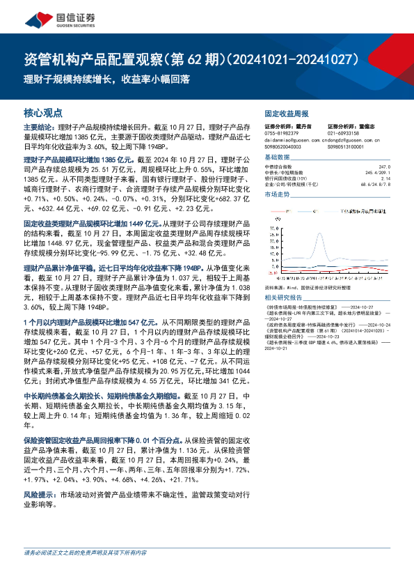 【国信证券】【20241030】资管机构产品配置观察(第62期):理财子规模持续增长,收益率小幅回落-15页