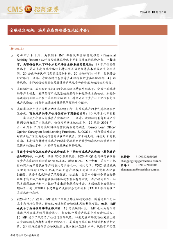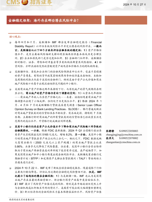 【海通证券】【20241027】金融稳定框架:海外存在哪些潜在风险冲击?-13页
