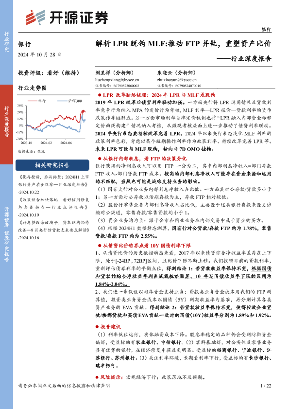 【开源证券】【20241028】解析LPR脱钩MLF:推动FTP并轨,重塑资产比价-22页