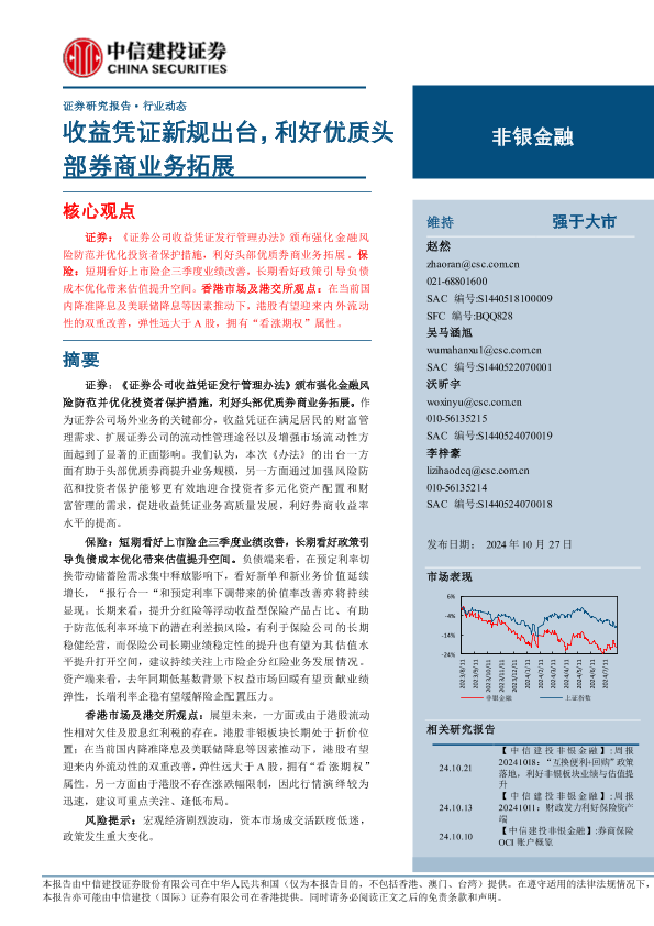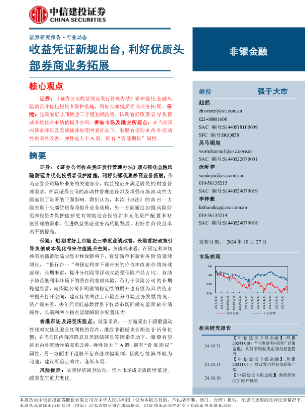 【中信建投证券】【20241027】非银金融行业:收益凭证新规出台,利好优质头部券商业务拓展-26页