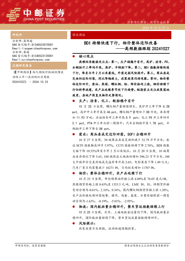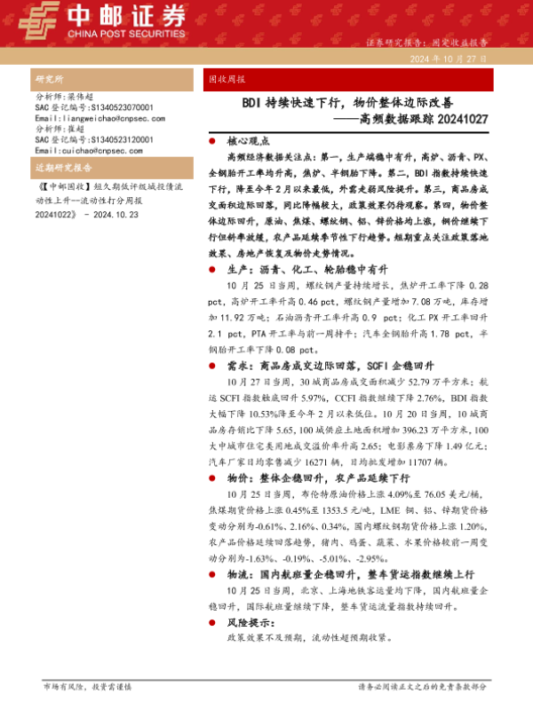 【中邮证券】【20241027】高频数据跟踪:BDI持续快速下行,物价整体边际改善-13页
