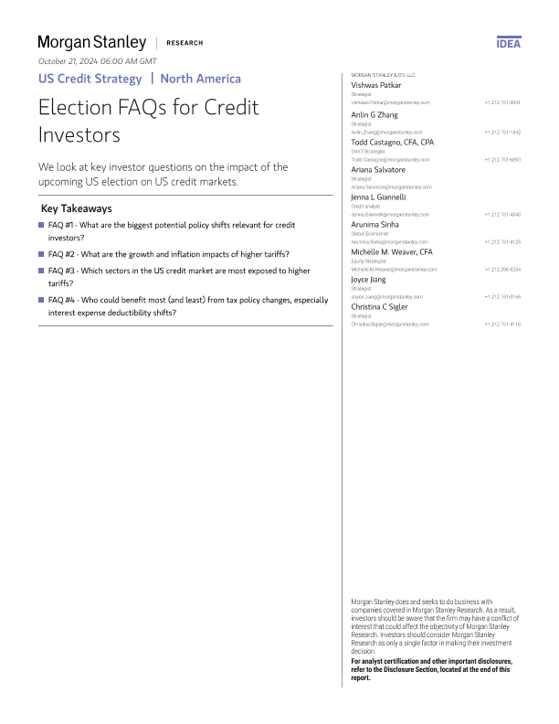 【Morgan Stanley】【2023】US Credit Strategy Election FAQs for Credit Investors-27页