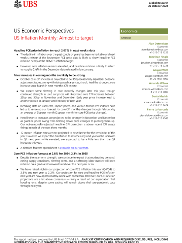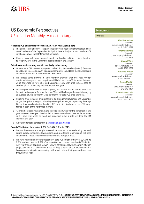 【UBS Brasil CCTVM S.A.】【20241022】US Economic Perspectives US Inflation Monthly Almost to Target-36页