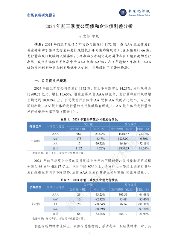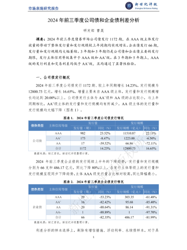 【新世纪评级】【2024】2024年前三季度公司债和企业债利差分析-6页