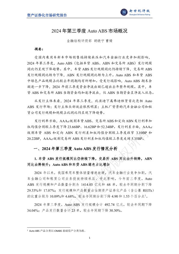 【金融结构评级部】【202409】2024年第三季度Auto ABS市场概况-7页