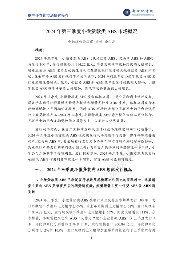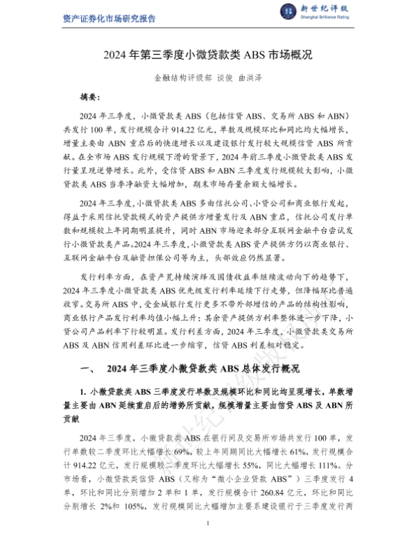 【金融结构评级部】【2024】2024年第三季度小微贷款类ABS市场概况-10页