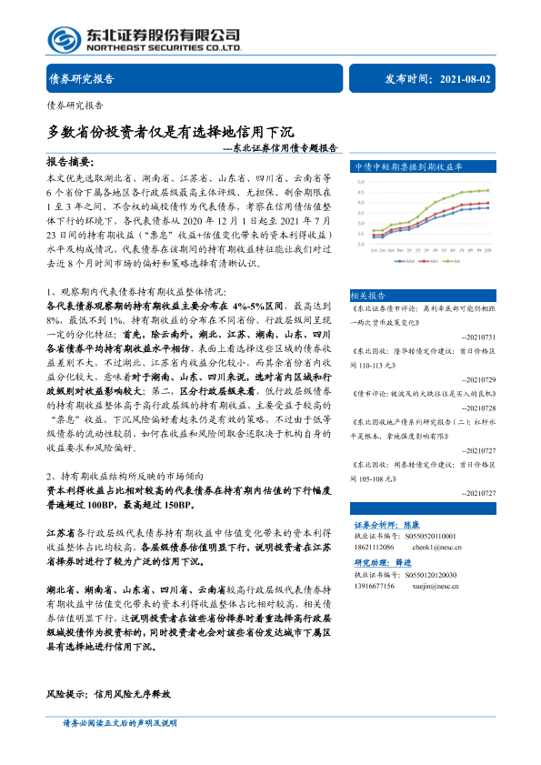 【东北证券】【20210802】信用债专题报告:多数省份投资者仅是有选择地信用下沉-15页