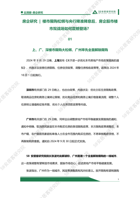 【云洞察-房企研究】【20240930】楼市限购松绑与央行降准降息后,房企股市楼市双战场如何震撼登场?-6页