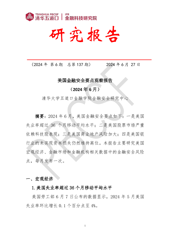 【清华大学五道口金融学院金融安全研究中心】【20240627】美国金融安全要点观察报告-6页
