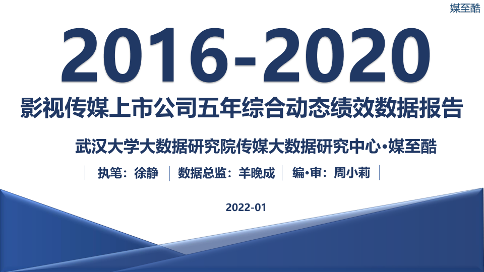 【武汉大学大数据研究院传媒大数据研究中心·媒至酷】【20220101】2016-2020影视传媒上市公司五年综合动态绩效数据报告-107页