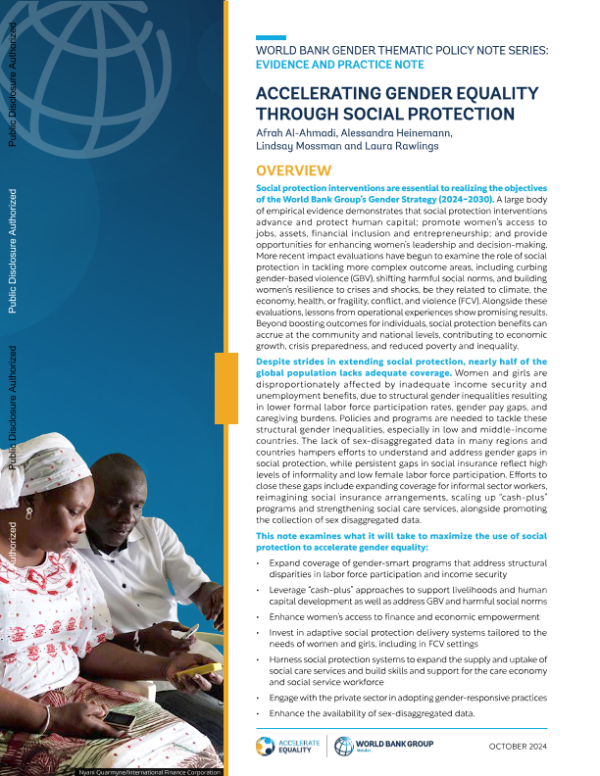 【世界银行】【202410】世界银行-通过社会保护加速性别平等-24页