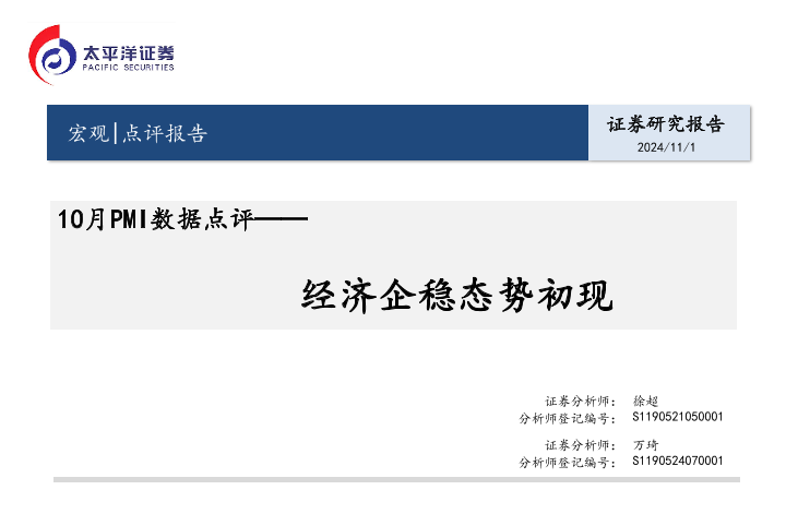 【太平洋证券】【20241101】10月PMI数据点评:经济企稳态势初现-15页