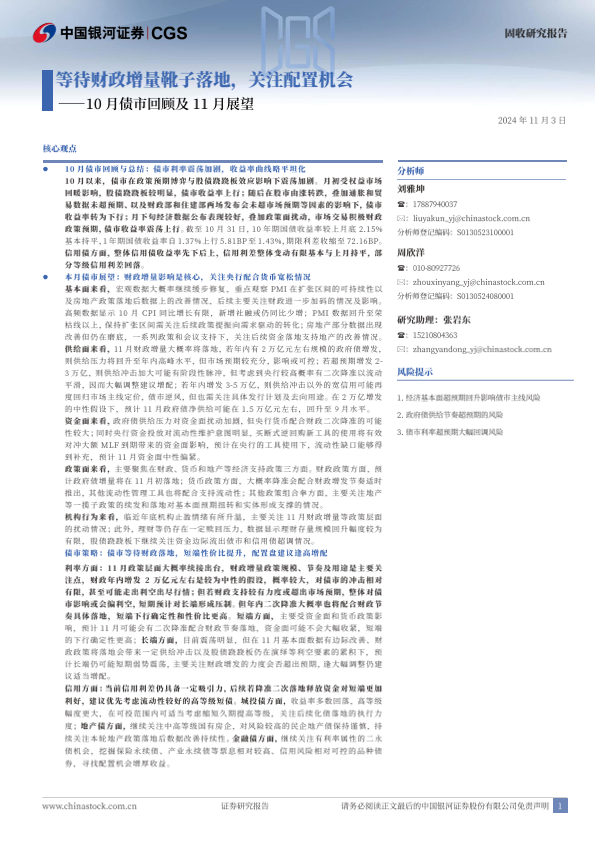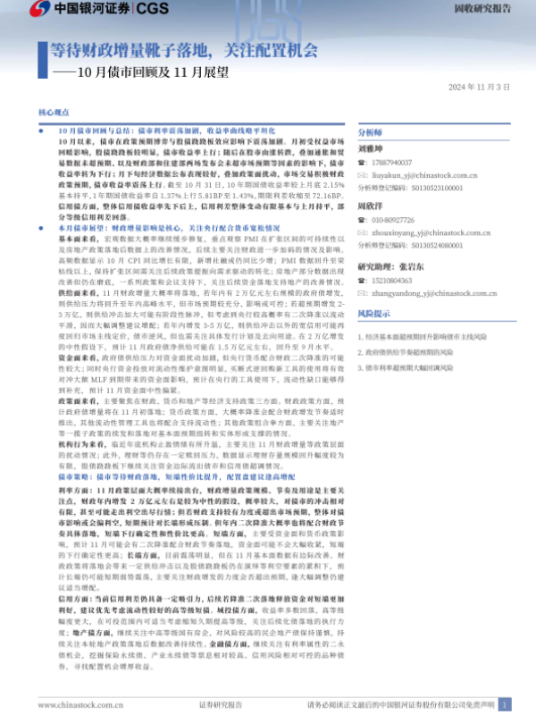 【银河证券】【20241103】10月债市回顾及11月展望:等待财政增量靴子落地,关注配置机会-21页