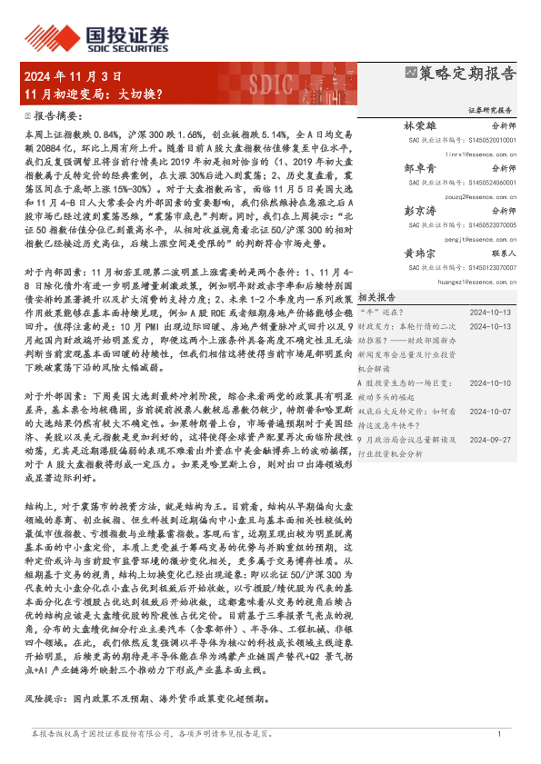 【国投证券】【20241103】11月初迎变局:大切换?-30页