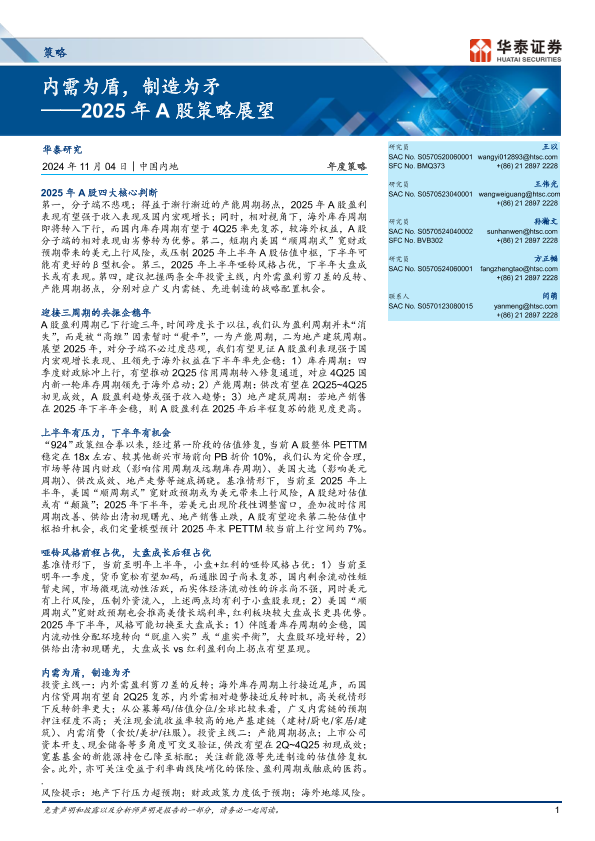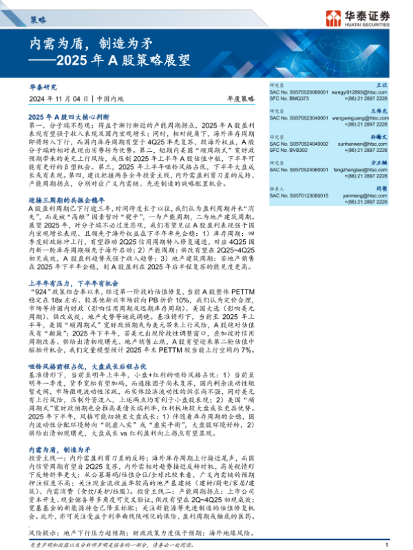 【华泰证券】【20241104】2025年A股策略展望:内需为盾,制造为矛-55页