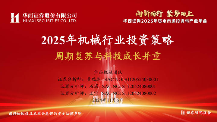 【华西证券】【20241106】2025年机械行业投资策略:周期复苏与科技成长并重-72页
