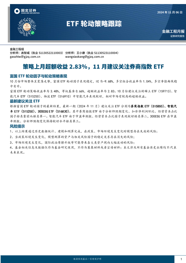 【国金证券】【20241106】ETF轮动策略跟踪:策略上月超额收益2.83%,11月建议关注券商指数ETF-10页
