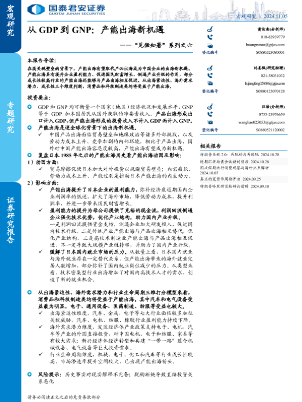 【国泰君安证券】【20241105】“见微知著”系列之六:从GDP到GNP,产能出海新机遇-13页