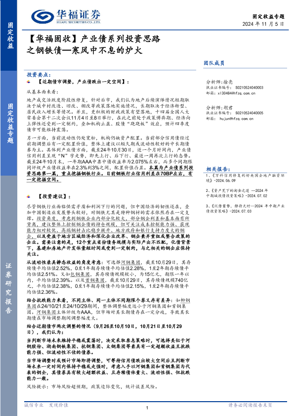 【华福证券】【20241105】【华福固收】产业债系列投资思路之钢铁债:寒风中不息的炉火-10页