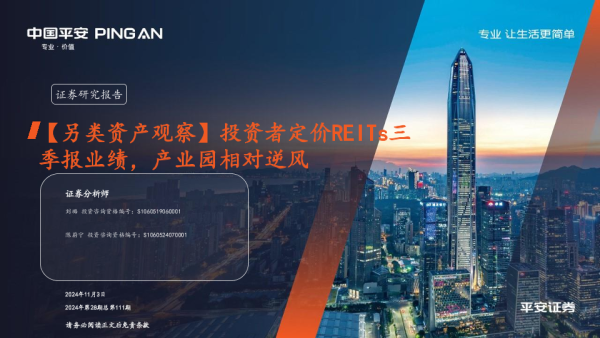【平安证券】【20241103】【另类资产观察】投资者定价REITs三季报业绩,产业园相对逆风-17页
