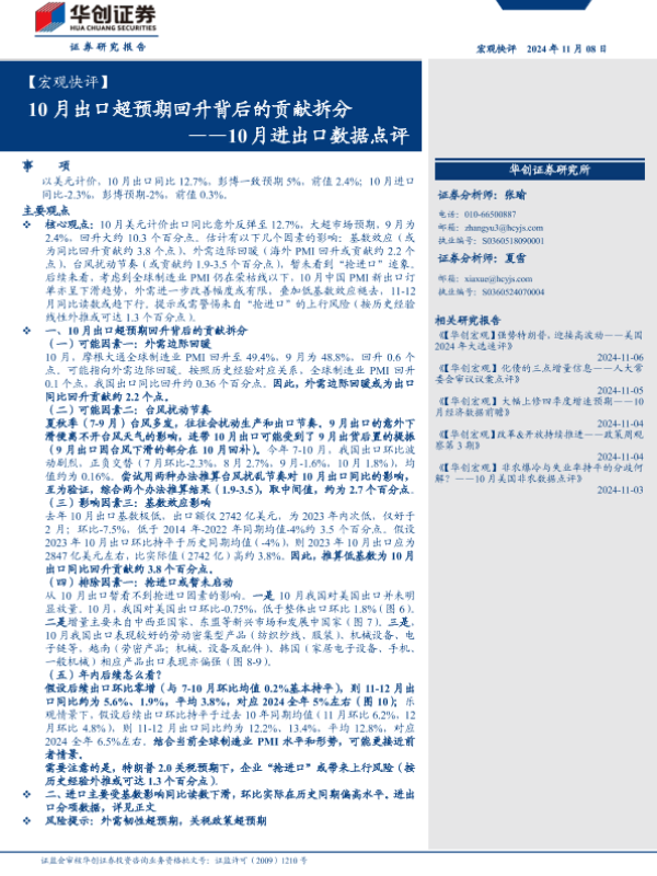 【华创证券】【20241108】10月出口超预期回升背后的贡献拆分——10月进出口数据点评-17页