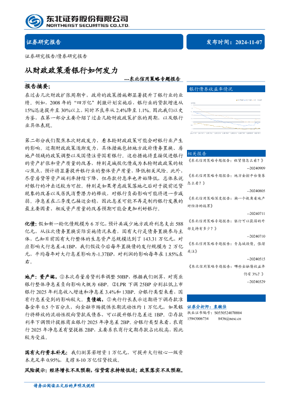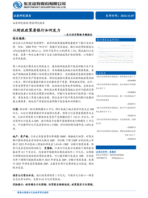 【东北证券】【20241107】东北信用策略专题报告:从财政政策看银行如何发力-30页