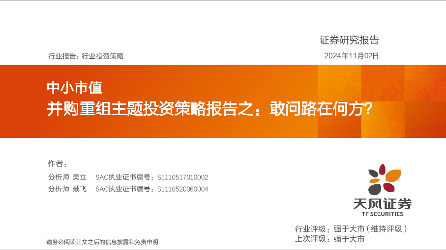 【天风证券】【20241102】中小市值并购重组主题投资策略报告之:敢问路在何方?-28页