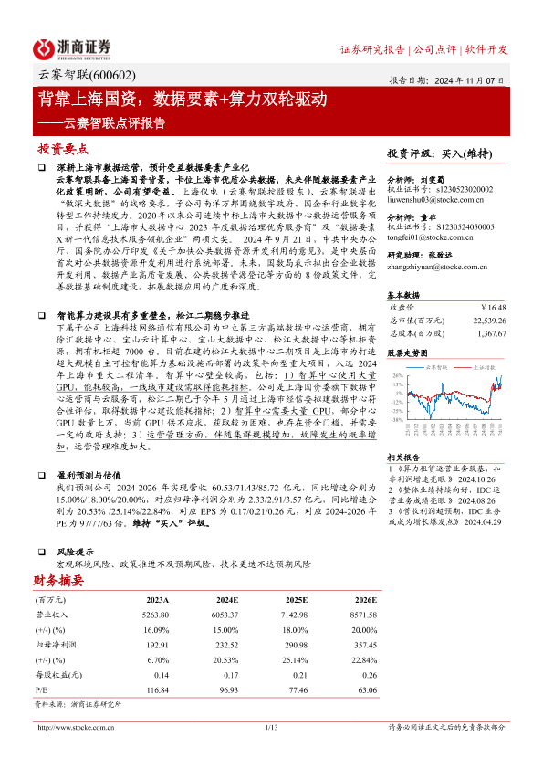 【浙商证券】【20241107】云赛智联(600602)点评报告:背靠上海国资,数据要素+算力双轮驱动-13页