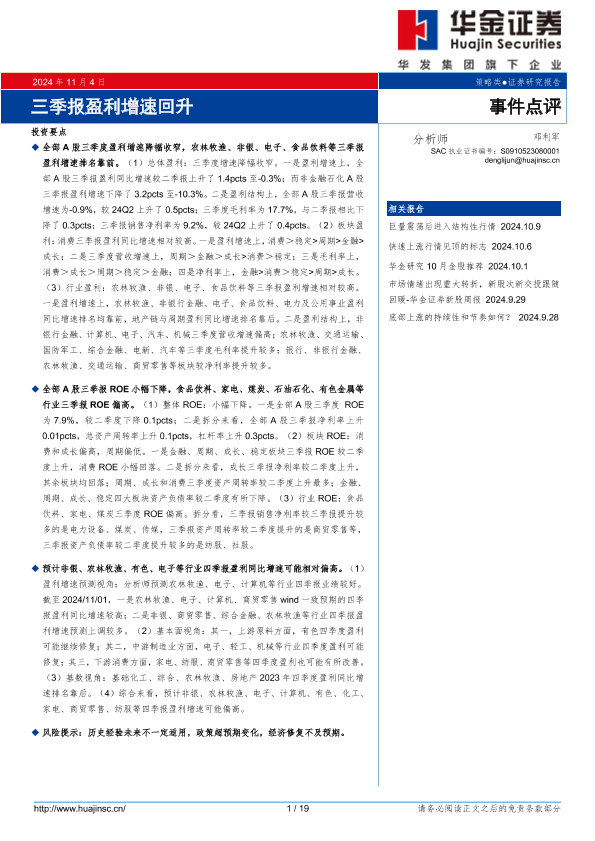 【华金证券】【20241104】事件点评:三季报盈利增速回升-19页