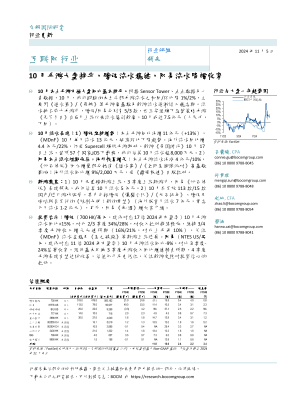 【交银国际】【20241105】10月手游大盘持平,腾讯流水稳健,网易流水降幅收窄-12页