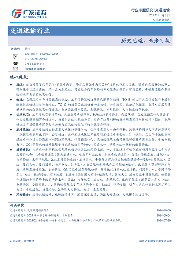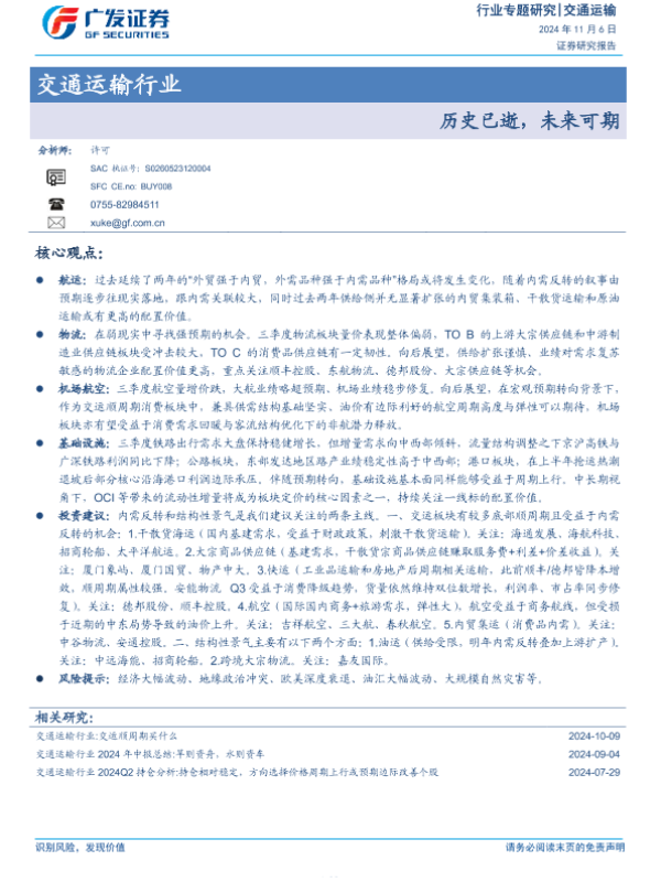 【广发证券】【20241106】交通运输行业:历史已逝,未来可期-36页