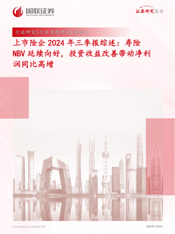 【国联证券】【20241104】保险Ⅱ行业上市险企2024年三季报综述:寿险NBV延续向好,投资收益改善带动净利润同比高增-20页