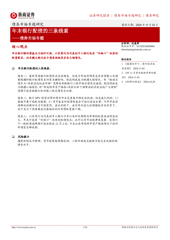 【浙商证券】【20241103】债券市场专题:年末银行配债的三条线索-10页