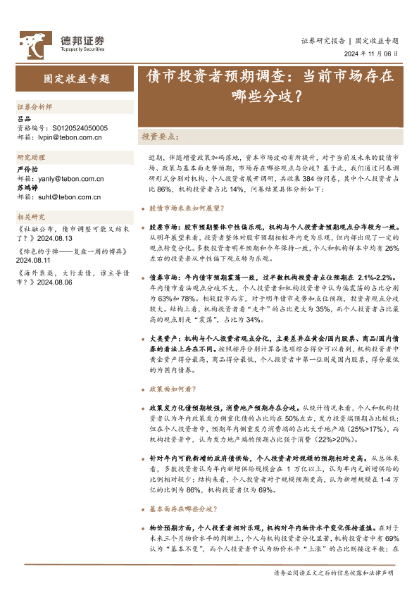 【德邦证券】【20241106】债市投资者预期调查:当前市场存在哪些分歧?-11页