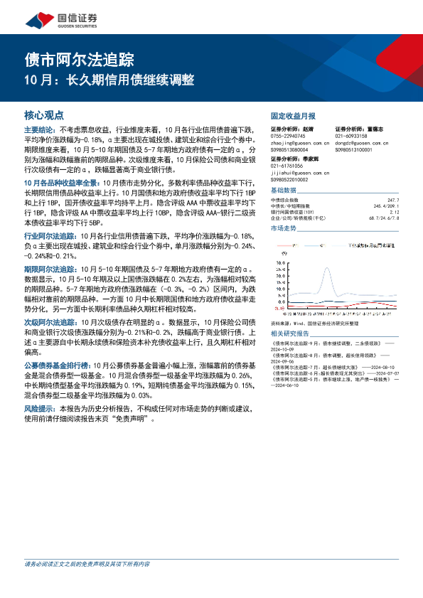 【国信证券】【20241106】债市阿尔法追踪:10月,长久期信用债继续调整-16页