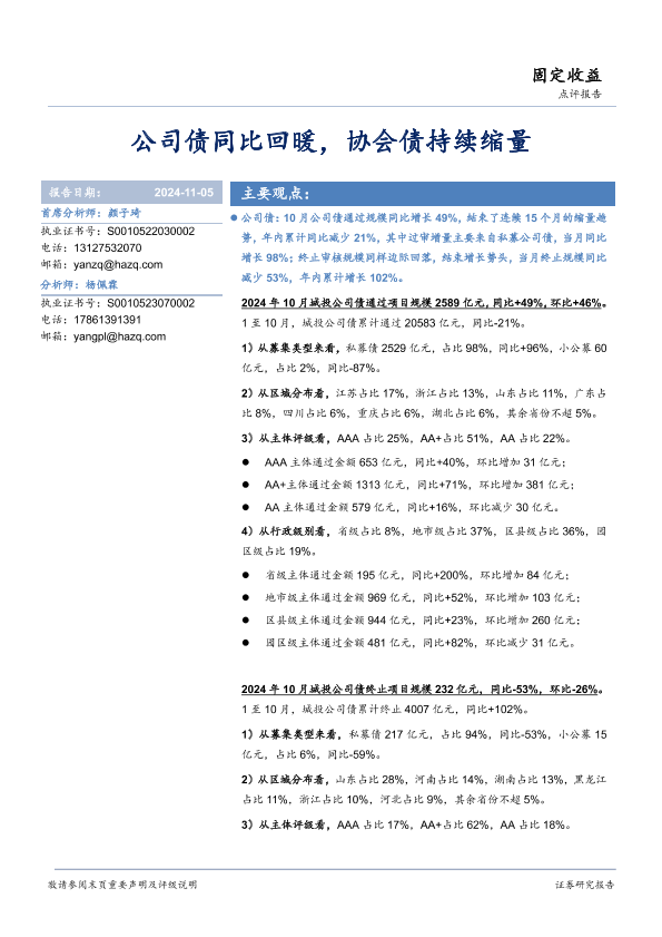 【华安证券】【20241105】公司债同比回暖,协会债持续缩量-10页
