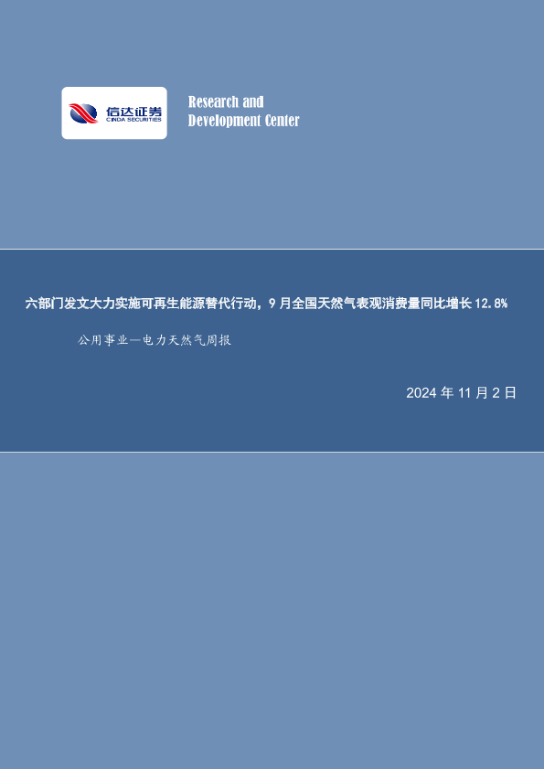 【信达证券】【20241102】公用事业行业-电力天然气周报:六部门发文大力实施可再生能源替代行动,9月全国天然气表观消费量同比增长12.8%-24页