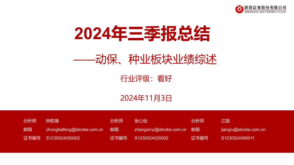 【浙商证券】【20241103】农林牧渔2024年三季报总结:动保、种业板块业绩综述-18页