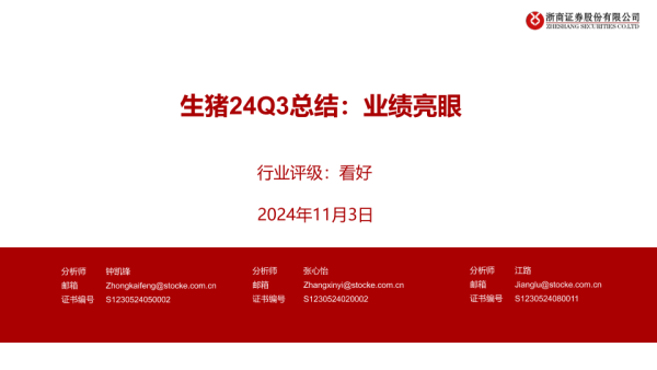 【浙商证券】【20241103】农林牧渔行业生猪24Q3总结:业绩亮眼-15页