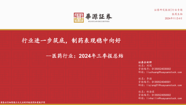 【华源证券】【20241104】医药行业2024年三季报总结:行业进一步筑底,制药表现稳中向好-91页