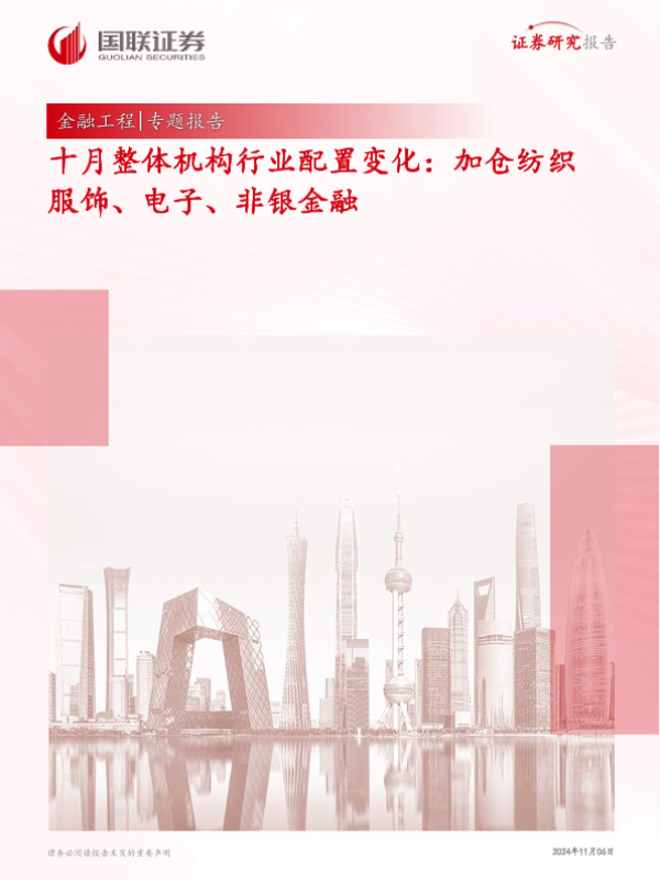 【国联证券】【20241106】十月整体机构行业配置变化:加仓纺织服饰、电子、非银金融-13页