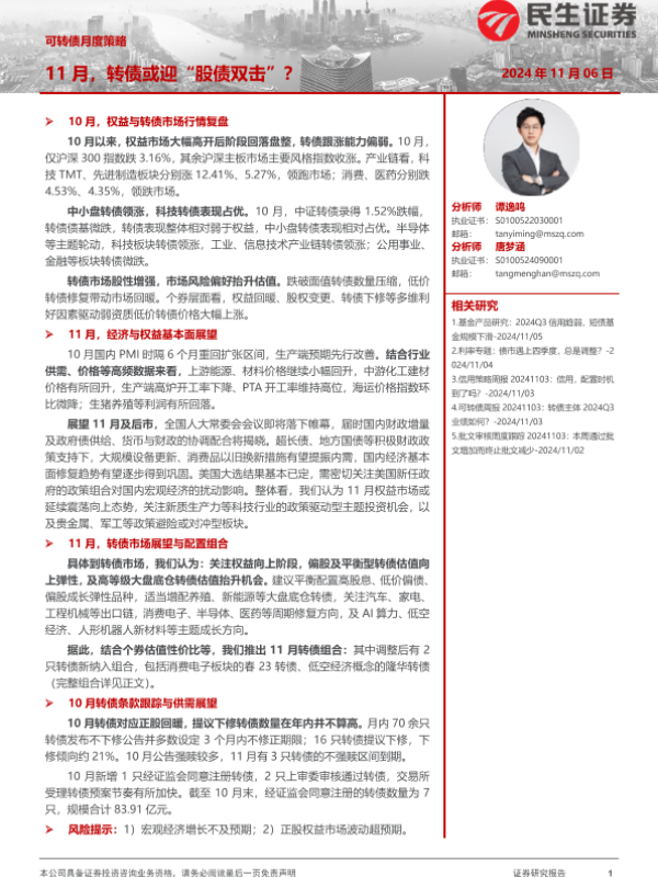 【民生证券】【20241106】可转债月度策略:11月,转债或迎“股债双击”?-26页