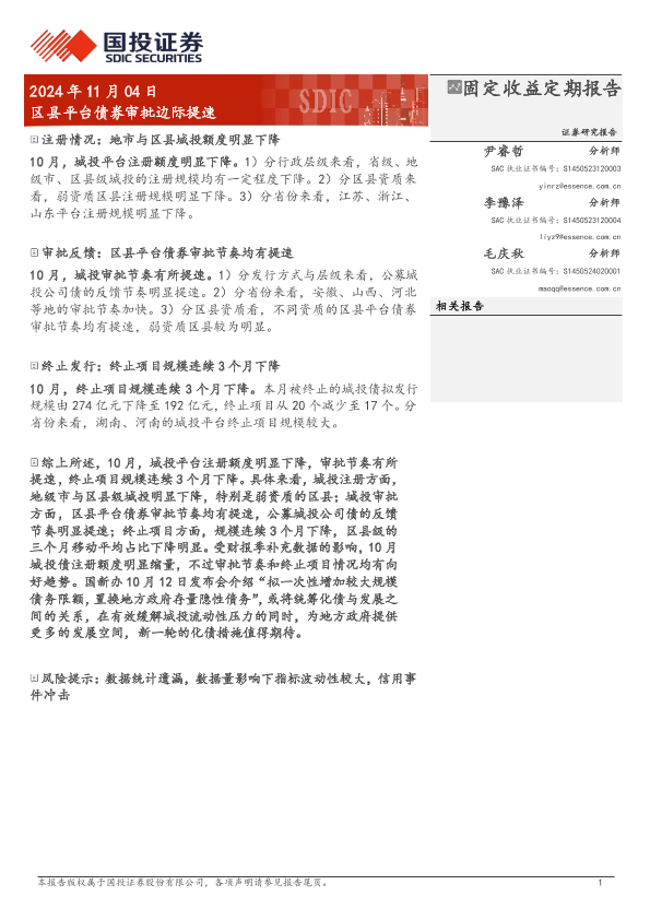 【国投证券】【20241104】固定收益定期报告:区县平台债券审批边际提速-11页