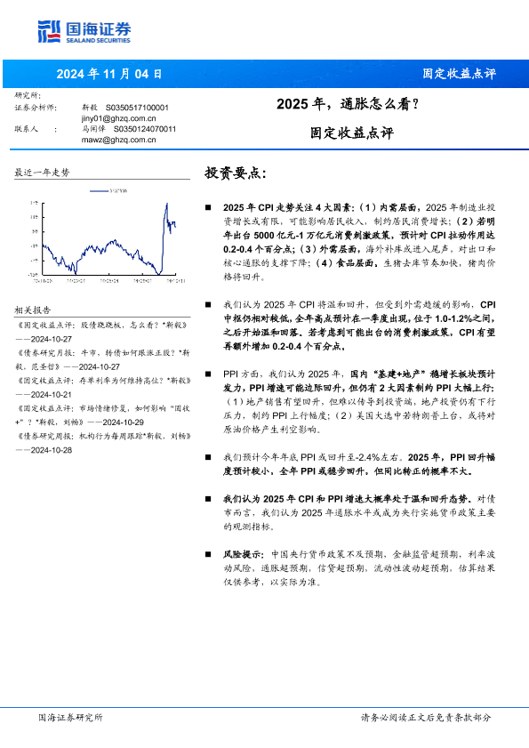 【国海证券】【20241104】固定收益点评:2025年,通胀怎么看?-10页