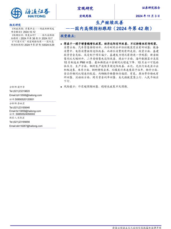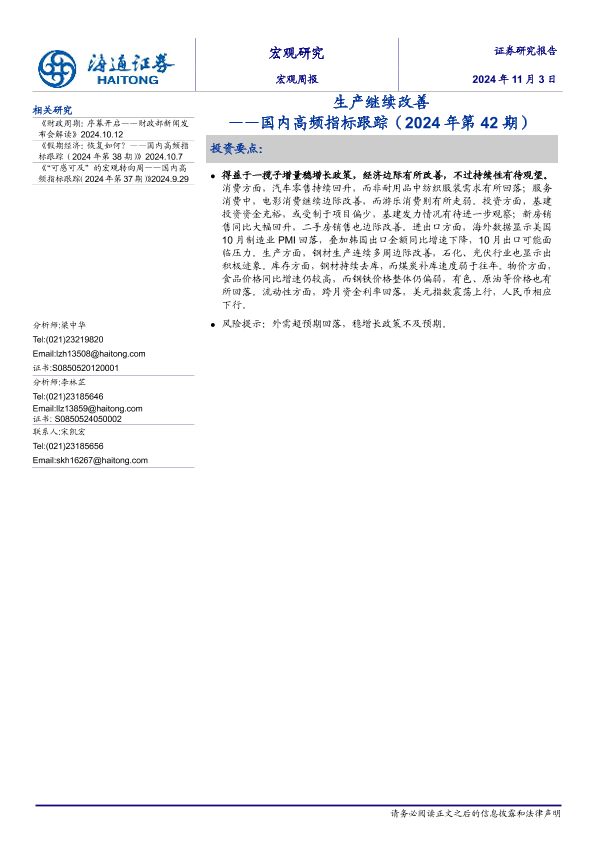 【海通证券】【20241103】国内高频指标跟踪(2024年第42期):生产继续改善-12页