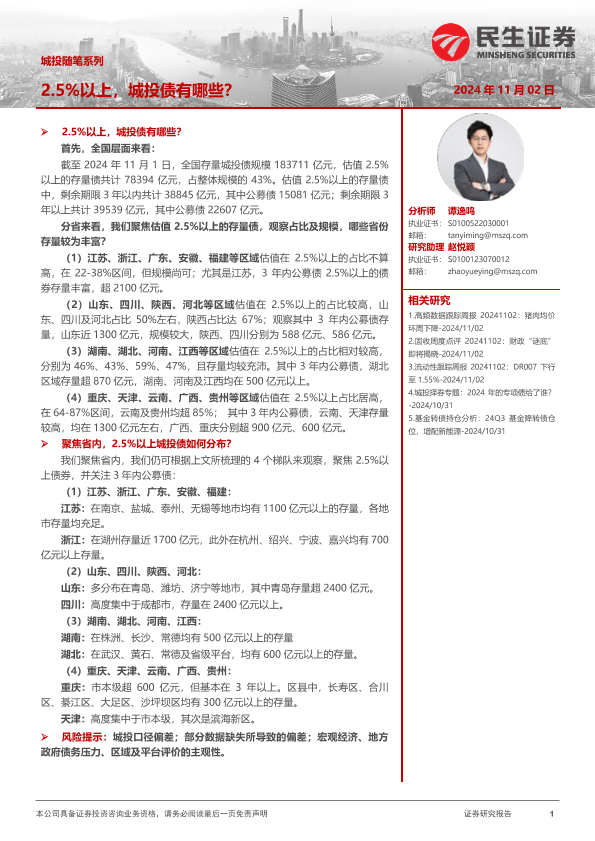 【民生证券】【20241102】城投随笔系列:2.5%以上,城投债有哪些?-15页
